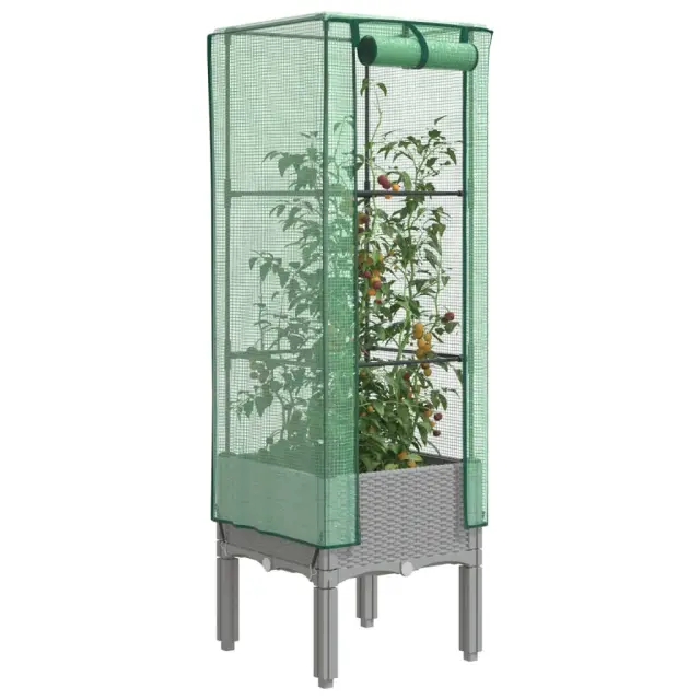 Ta visoka greda s prevleko za rastlinjak zagotavlja veliko prostora za gojenje s trdnim podpornim okvirjem.Robustna konstrukcija: Visoka greda, izdelana iz polipropilena, ima na vrhu trpežen okvir iz železnih cevi, ki omogoča rastlinam, da rastejo in plezajo po njem.Funkcionalna prevleka: V visoko gredo je vgrajena vodoodporna polietilenska prevleka, ki ščiti rastline pred ekstremnimi temperaturami in preprečuje dostop žuželkam, pticam in majhnim živalim.Praktična oblika: V visoki gredi so zadrge za prezračevanje, s katerimi lahko prevleko prilagodite po potrebi. Poleg tega ima na vrhu vrvi, ki omogočajo enostavno pritrditev mreže na cev.Zasnova z videzom ratana: Visoka greda z videzom ratana vašemu zunanjemu bivalnemu prostoru doda pridih naravnega čara.Široka uporaba: V visoki gredi je dovolj prostora za vaše rastline, zelenjavo, zelišča in rože. Uporabite jo lahko na vrtovih, dvoriščih, balkonih itd.Barva visoke grede: Svetlo sivaBarva mreže: ZelenaMaterial visoke grede: PP (polipropilen).Material mreže: PE (polietilen)Material cevi: ŽelezoDimenzije visoke grede: 40 x 40 x 44 cm (D x Š x V)Dimenzije rastlinjaka: 40 x 40 x 110 cm (D x Š x V)Dimenzije cevi: 40 x 40 x 120 cm (D x Š x V)Celotne dimenzije: 40 x 40 x 140 cm (D x Š x V)Z vodoodporno prevleko rastlinjakaPotrebno sestavljanje: Da 4015860