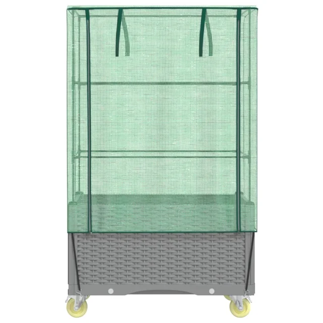 Ta visoka greda s prevleko za rastlinjak in kolesi zagotavlja veliko prostora za gojenje s trdnim podpornim okvirjem.