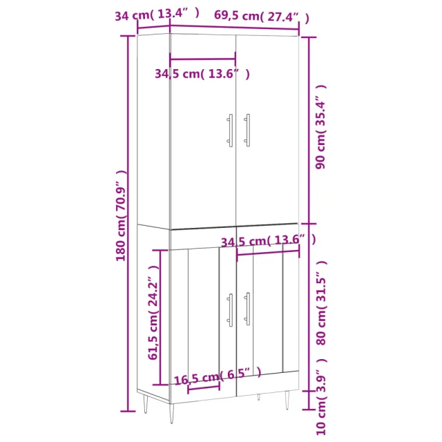 vidaXL Visoka komoda betonsko siva 69,5x34x180 cm inženirski les