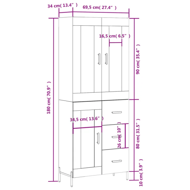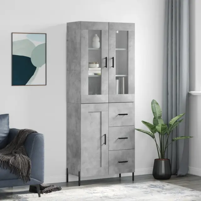 vidaXL Visoka komoda betonsko siva 69,5x34x180 cm inženirski les