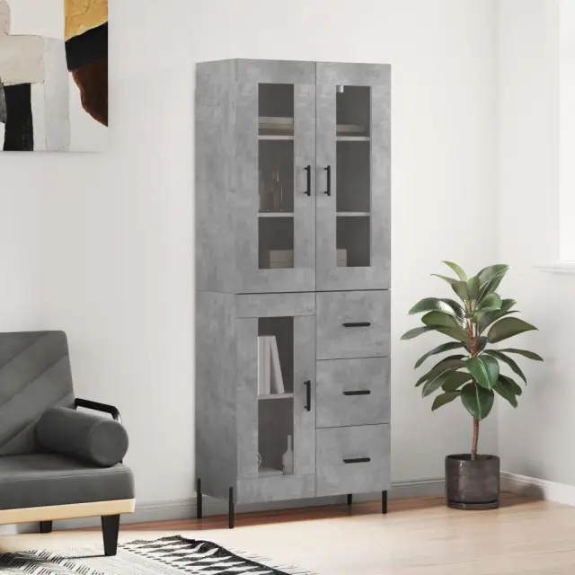 vidaXL Visoka komoda betonsko siva 69,5x34x180 cm inženirski les