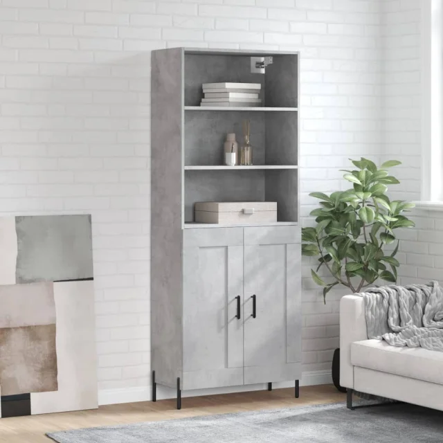 vidaXL Visoka komoda betonsko siva 69,5x34x180 cm inženirski les