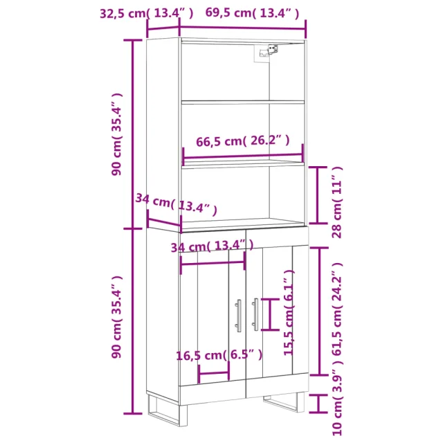 vidaXL Visoka komoda betonsko siva 69,5x34x180 cm inženirski les
