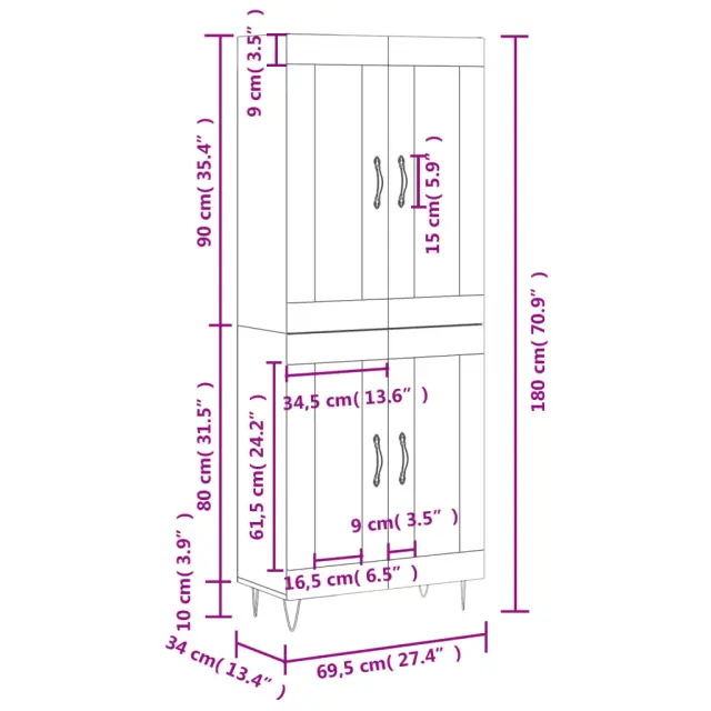 vidaXL Visoka komoda betonsko siva 69,5x34x180 cm inženirski les