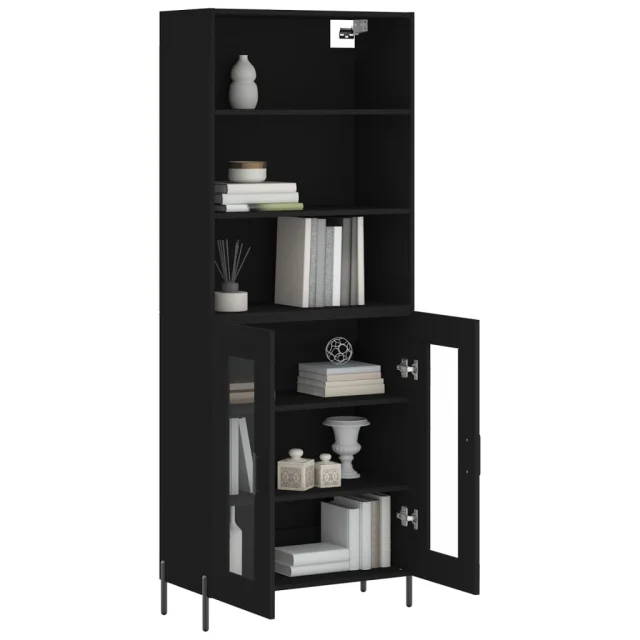 vidaXL Visoka komoda črna 69,5x34x180 cm inženirski les