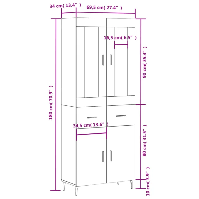 vidaXL Visoka komoda dimljen hrast 69,5x34x180 cm inženirski les