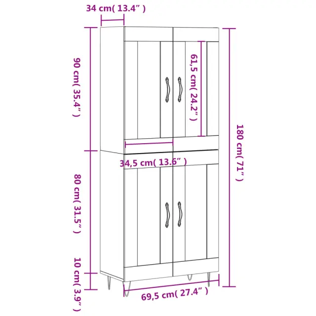 vidaXL Visoka komoda dimljen hrast 69,5x34x180 cm inženirski les