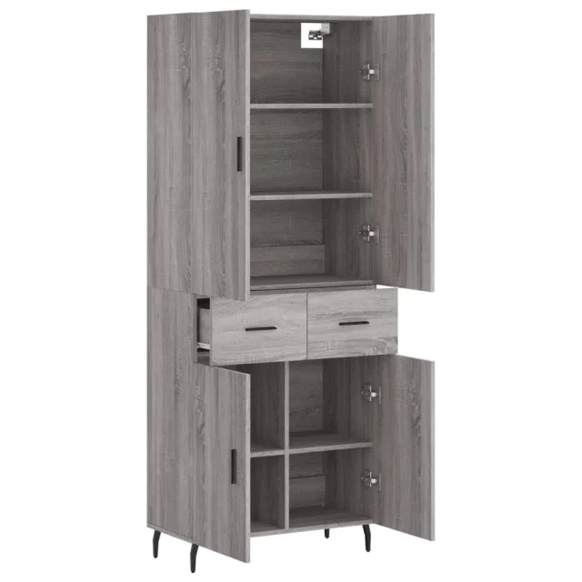 vidaXL Visoka komoda siva sonoma 69,5x34x180 cm inženirski les