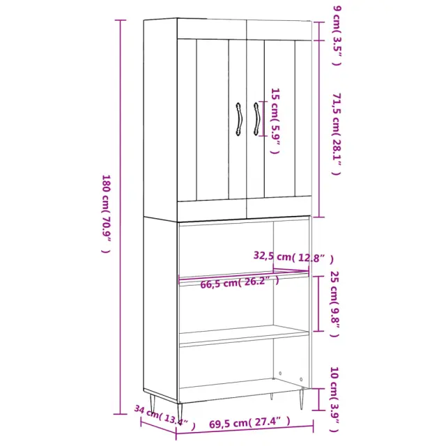 vidaXL Visoka komoda siva sonoma 69,5x34x180 cm inženirski les