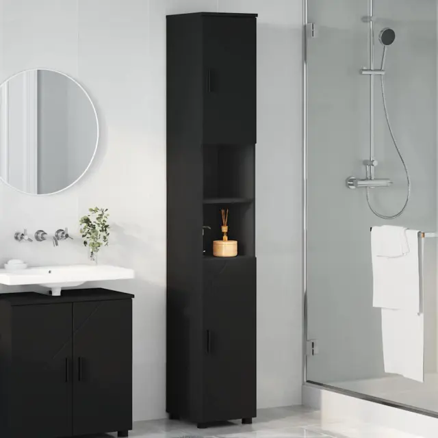 vidaXL Visoka kopalniška omara Črna 30 x 35 x 192 cm Konstruiran les