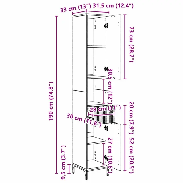 Ta visoki kabinet za kopalnico je stilska in pametna rešitev za tvoje shranjevanje. Čiste linije in preprost dizajn se odlično podajo v katero koli kopalnico, poleg tega pa ponujajo dovolj prostora za vse tvoje stvari. Enostavno se prilega sodobnim domovom, kar ti daje praktičnost brez žrtvovanja stila. Visoka in ozka oblika je super za izkoriščanje navpičnega prostora, kar je idealno za manjše kopalnice ali vse, kjer želiš prihraniti prostor na tleh.