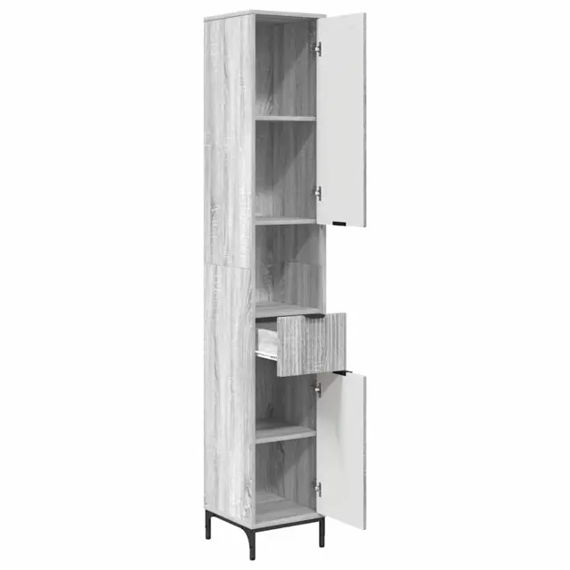 vidaXL Visoka kopalniška omara z vrati Siva sonoma 31.5 x 33 x 190 cm