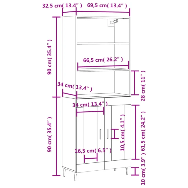 • Mere zgornje plošče: 69,5 x 32,5 x 90 cm (Š x G x V)