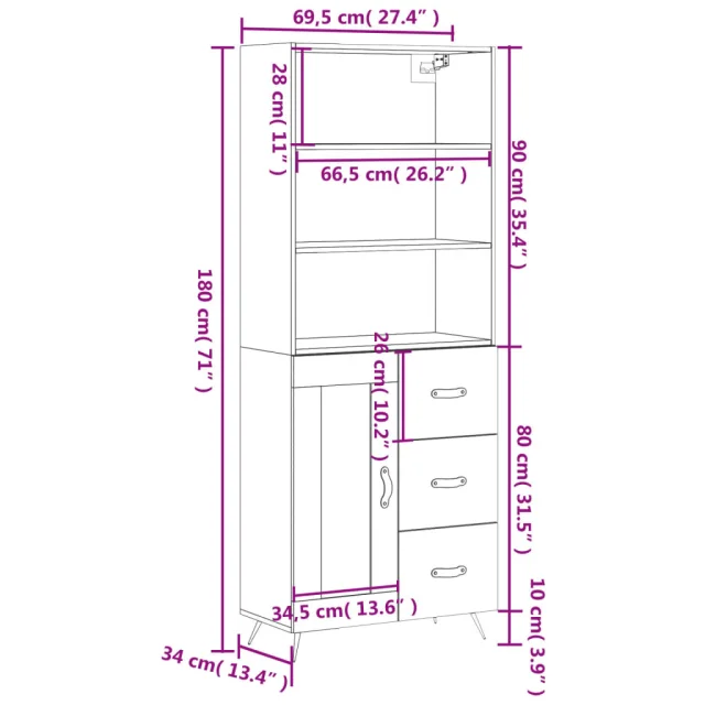 • Dimenzije kredence: 69,5 x 34 x 90 cm (Š x G x V)