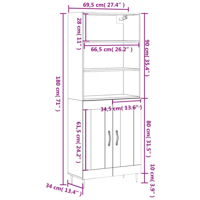 Ali iščete stilsko visoko omaro? Ta visoka komoda doda eleganten čar vašim notranjim prostorom! Vzdržljiv material: Inženirski les se ponaša z izjemno kakovostjo, gladko površino ter močjo, stabilnostjo in odpornostjo na vlago.Veliko prostora za shranjevanje: Omarica ponuja veliko prostora za shranjevanje različnih dnevnih potrebščin, da bodo lepo organizirane in na dosegu roke.Praktična vrata: Poskrbite, da bo vaš prostor urejen, tako da majhne stvari skrijete za vrata omare za shranjevanje.Kovinske noge: Kovinske noge dodajo vaši notranjosti umirjen slog, hkrati pa zagotavljajo stabilnost. Opozorilo:Za preprečitev prevračanja je treba ta izdelek uporabiti s priloženo napravo za pritrditev na steno. Dobro je vedeti:Vijaki in čepi za notranjost stene niso priloženi. Svetujemo vam, da poiščete in uporabite vijake in zatiče, ki so primerni za vaše stene. Če niste prepričani, se lahko posvetujete s strokovnjakom. Preberite in upoštevajte vse korake v navodilih.Barva: BelaMaterial: Inženirski les, kovinaSkupne dimenzije: 69,5 x 34 x 180 cm (Š x G x V)Dimenzije kredence: 69,5 x 34 x 90 cm (Š x G x V)Mere zgornje plošče: 69,5 x 32,5 x 90 cm (Š x G x V)Potrebno sestavljanje: DaPaket vsebuje:1 x Komoda1 x Zgornja omaricaLegal Documents:Več informacij o tem, kako preprečiti prevračanje pohištva, je na voljo tukaj 3189933