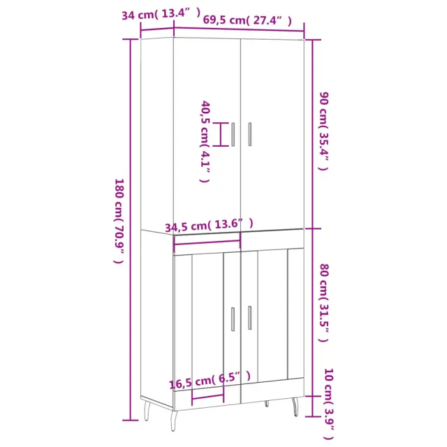 Ali iščete stilsko visoko omaro? Ta visoka komoda doda eleganten čar vašim notranjim prostorom! Vzdržljiv material: Inženirski les se ponaša z izjemno kakovostjo, gladko površino ter močjo, stabilnostjo in odpornostjo na vlago.Veliko prostora za shranjevanje: Stranska omarica nudi dovolj prostora za shranjevanje različnih vsakodnevnih stvari, da bodo dobro organizirane in na dosegu roke.Steklena zasnova: Steklena zasnova poudarja eleganco stranske omare in vam omogoča, da razstavite svoje najljubše stvari.Praktična vrata: Poskrbite, da bo vaš prostor urejen, tako da majhne stvari skrijete za vrata omare za shranjevanje.Kovinske noge: Kovinske noge dodajo vaši notranjosti umirjen slog, hkrati pa zagotavljajo stabilnost. Opozorilo:Za preprečitev prevračanja je treba ta izdelek uporabiti s priloženo napravo za pritrditev na steno. Dobro je vedeti:Vijaki in čepi za notranjost stene niso priloženi. Svetujemo vam, da poiščete in uporabite vijake in zatiče, ki so primerni za vaše stene. Če niste prepričani, se lahko posvetujete s strokovnjakom. Preberite in upoštevajte vse korake v navodilih.Barva: BelaMaterial: Inženirski les, kovina, stekloSkupne dimenzije: 69,5 x 34 x 180 cm (Š x G x V)Dimenzije kredence: 69,5 x 34 x 90 cm (Š x G x V)Mere zgornje plošče: 69,5 x 34 x 90 cm (Š x G x V)Potrebno sestavljanje: DaPaket vsebuje:1 x Komoda1 x Zgornja omaricaLegal Documents:Več informacij o tem, kako preprečiti prevračanje pohištva, je na voljo tukaj 3195747