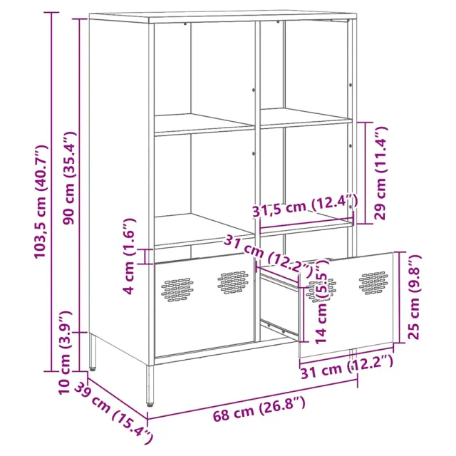 vidaXL Visoka omara bela 68x39x103,5 cm jeklo