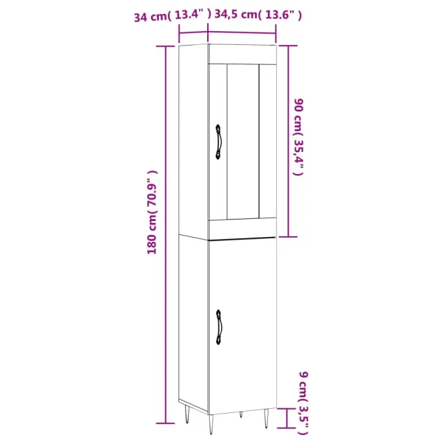 vidaXL Visoka omara betonsko siva 34,5x34x180 cm inženirski les
