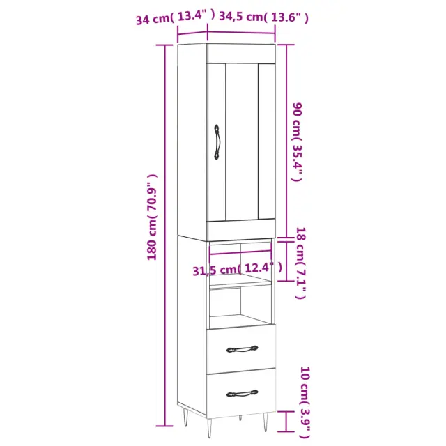 vidaXL Visoka omara betonsko siva 34,5x34x180 cm inženirski les