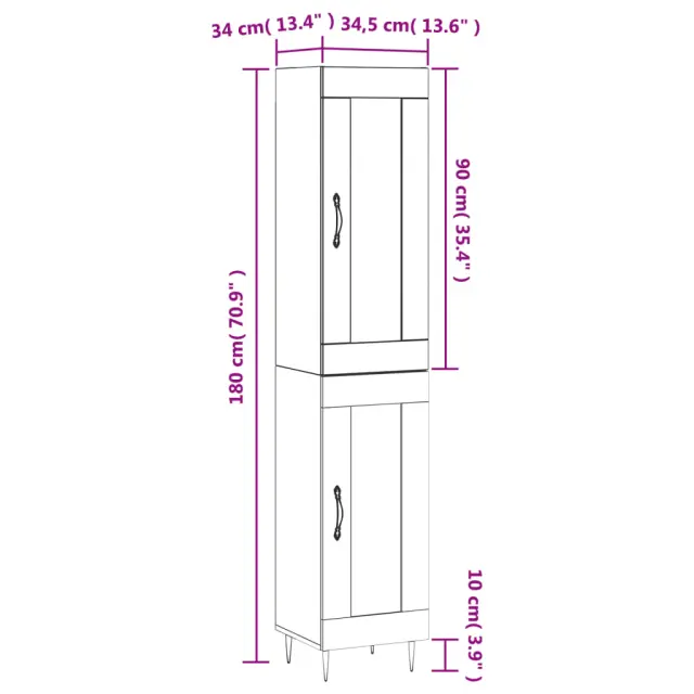 vidaXL Visoka omara betonsko siva 34,5x34x180 cm inženirski les