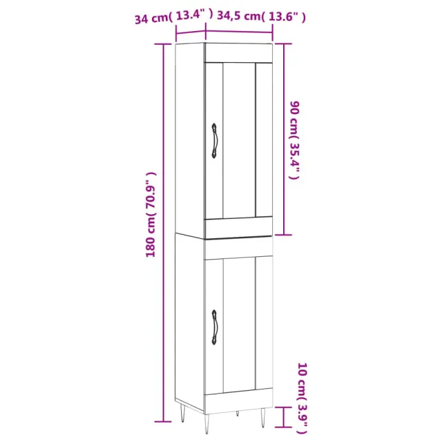 vidaXL Visoka omara betonsko siva 34,5x34x180 cm inženirski les