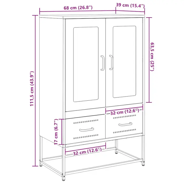 vidaXL Visoka omara črna 68x39x111,5 cm jeklo