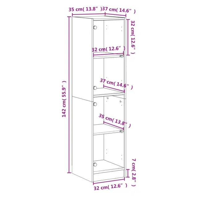 vidaXL Visoka omara s steklenimi vrati bela 35x37x142 cm