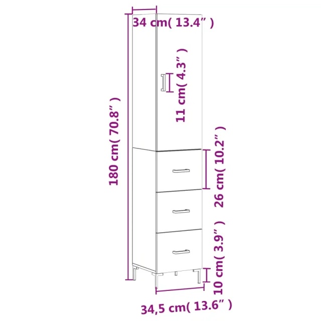 • Mere zgornje enote visoke omare: 34,5 x 34 x 90 cm (Š x G x V)