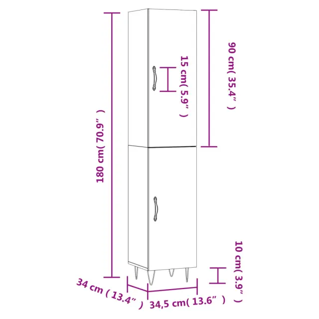 vidaXL Visoka omara siva sonoma 34,5x34x180 cm inženirski les