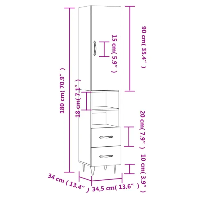 vidaXL Visoka omara siva sonoma 34,5x34x180 cm inženirski les