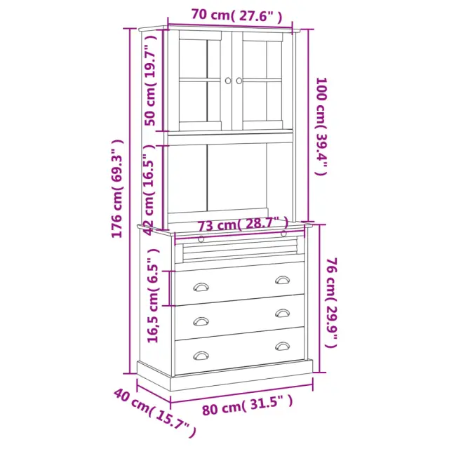 vidaXL Visoka omara VIGO 80x40x176 cm trdna borovina