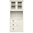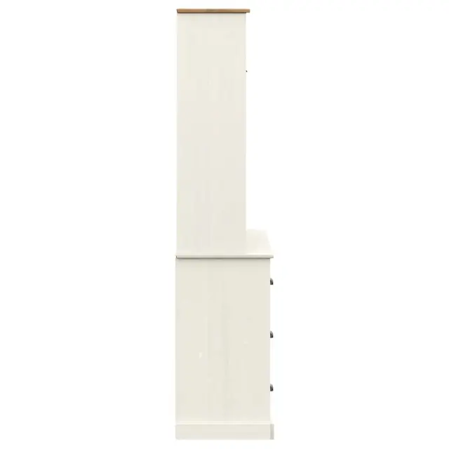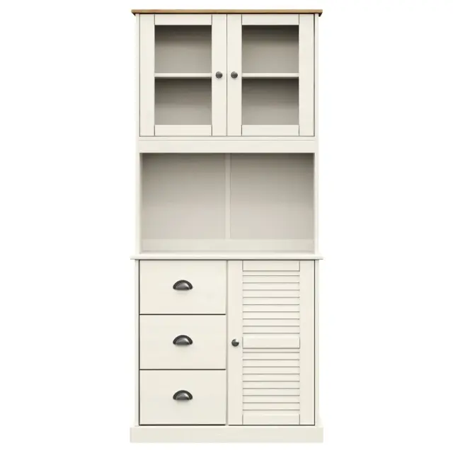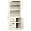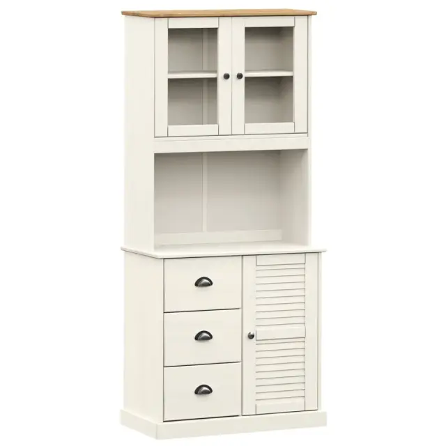 Ali iščete stilsko visoko omaro? Ta visoka komoda doda eleganten čar vašim notranjim prostorom! Trdna borovina: Trdna borovina je čudovit naravni material. Borovina ima ravne vzorce, grče pa dajejo materialu njegov značilen, rustikalen videz. Miza je izdelana iz trdnega borovega lesa, zato je trpežna in stabilna.Veliko prostora za shranjevanje: V omarici so predali in predelki, ki zagotavljajo dovolj prostora za urejeno shranjevanje zbirke skodelic, posode in majhnih okrasnih predmetov.Steklena vrata: Zaradi kaljenega poliranega stekla so vrata te lesene omarice bolj robustna in varna. Omogoča, da vidite notranjost zgornje polovice in lepo prikažete predmete.Enostavno vzdrževanje: Bife omarico je enostavno očistiti z vlažno krpo in zahteva manj vzdrževanja.Kovinski ročaji in gumbi: Visoka omarica je opremljena s kovinskimi ročaji in gumbi, ki olajšajo odpiranje in zapiranje omare, hkrati pa jo naredijo še lepšo. Opozorilo:Za preprečitev prevračanja je treba ta izdelek uporabiti s priloženo napravo za pritrditev na steno.Barva: BelaMaterial: Trdna borovina s prevleko iz voska, inženirski les, kovina, stekloCelotne dimenzije: 78 x 40 x 175 cm (Š x G x V)Komoda:Dimenzije: 78 x 40 x 75 cm (Š x G x V)Velikost vrat: 35 x 66 cm (Š x V)Zunanje dimenzije predala: 35 x 22 cm (D x Š)Notranje dimenzije predala: 29 x 14 x 14 cm (Š x G x V)Zgornja omarica:Dimenzije: 78 x 30 x 100 cm (Š x G x V)Velikost vrat: 35 x 50 cm (Š x V)Z zasnovo roletZbirka: VIGOPotrebno sestavljanje: DaPaket vsebuje:1 x Komoda1 x Zgornja omaricaLegal Documents:Več informacij o tem, kako preprečiti prevračanje pohištva, je na voljo tukaj 3188305