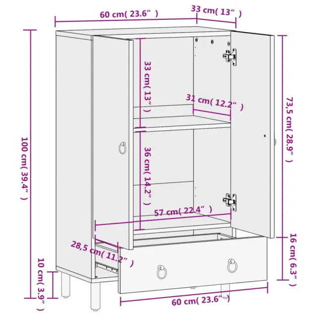 vidaXL Visoka omarica 60x33x100 cm trden mangov les