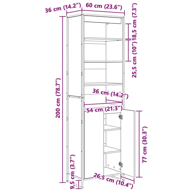 Ta elegantna industrijska visoka omara je prava izbira za vsak dnevni prostor, saj prinaša estetsko rešitev za shranjevanje osnovnih stvari. S svojo visoko pravokotno obliko nudi obilo prostora in moderno noto, brez težav pa se ukloni sodobnim in industrijskim notranjim stilom. Konstrukcija iz inženirskega lesa zagotavlja trpežnost, kar pomeni, da bo omara dolgo ostala funkcionalna in lepa.