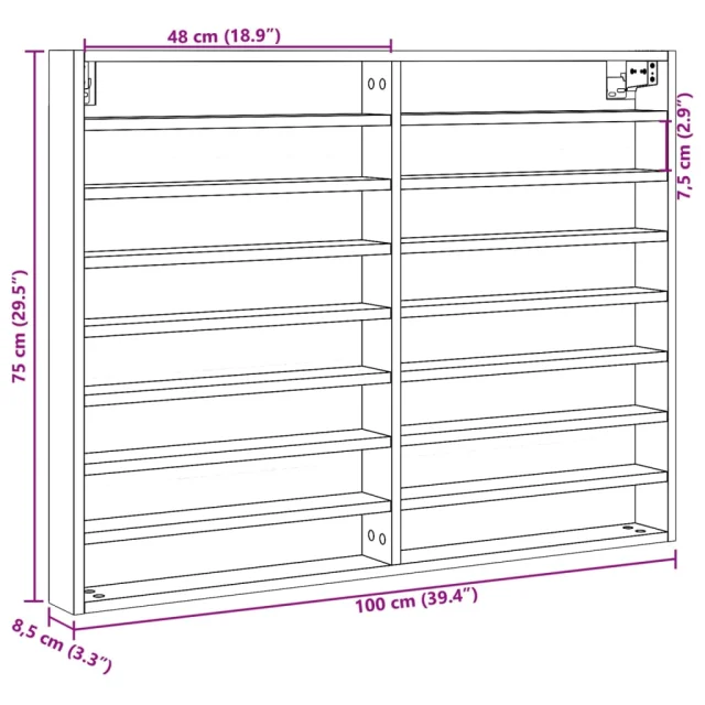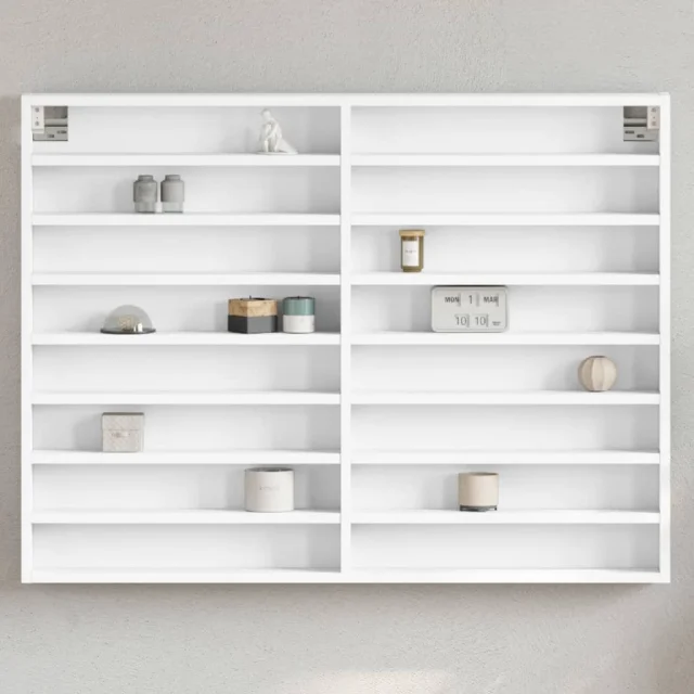vidaXL Vitrina bela 100x8,5x75 cm iverna plošča