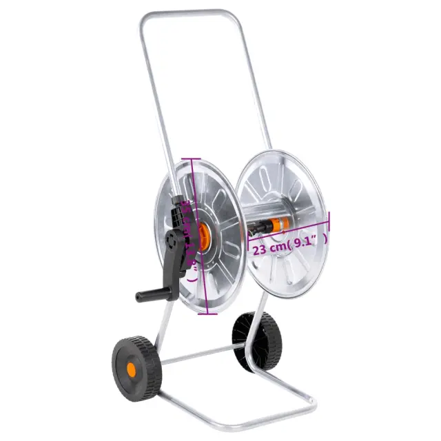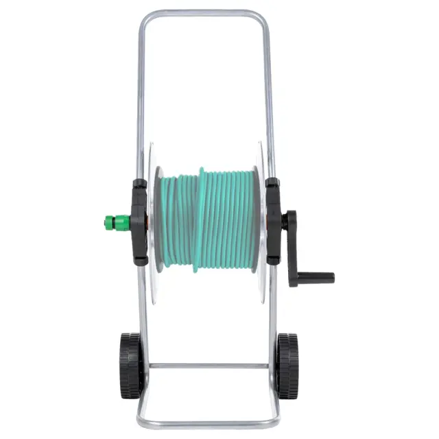 Ta voziček s kolutom za cev je kompaktna rešitev za shranjevanje, ki omogoča, da so cevi urejene in da se ne zapletajo. Velika prilagodljivost: Kombinacija daljšega ročaja za vleko in vgrajenih koles zagotavlja, da se kolut zlahka premika po vašem vrtu.Stabilna in vzdržljiva konstrukcija: Konstrukcija iz pocinkanega jekla zagotavlja vzdržljivost, stabilnost in odpornost proti koroziji in zahtevnim vremenskim razmeram ter tako zagotavlja dolgotrajno delovanje.Brez nereda: Poševni priključek cevi preprečuje zvijanje in prepletanje cevi, kar omogoča udobno uporabo.Barva: Srebrna in črnaMaterial: Pocinkano jeklo in plastikaCelotne dimenzije: 48 x 41,5 x 88 cm (D x Š x V)Premer bobna: 35 mmŠirina bobna: 23 cmZa shranjevanje do 50 m vrtne cevi 1/2" ali 35 m vrtne cevi 3/4"Potrebno sestavljanje: Da 4005279