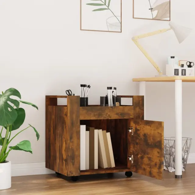 vidaXL Voziček za pisalno mizo dimljeni hrast 60x45x60 cm inž. les