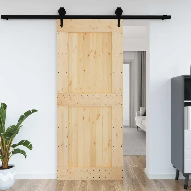 Ta vrata iz masivnega borovega lesa dodajajo sodoben pridih s svojim preprostim in funkcionalnim dizajnom, ki ga zaznamujejo čiste linije in minimalističen slog. Narejena iz neobdelanega bora, izžarevajo naravno lepoto in dodajajo toplino notranjosti.