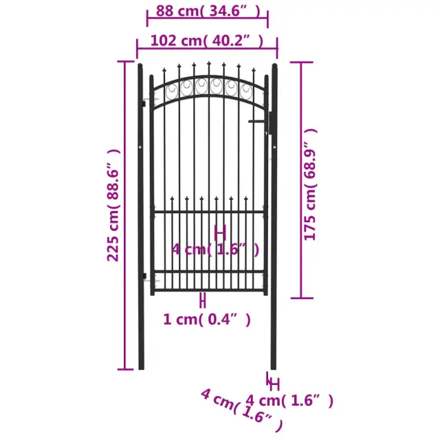 vidaXL Vrata za ograjo s konicami jeklo 100x175 cm črna