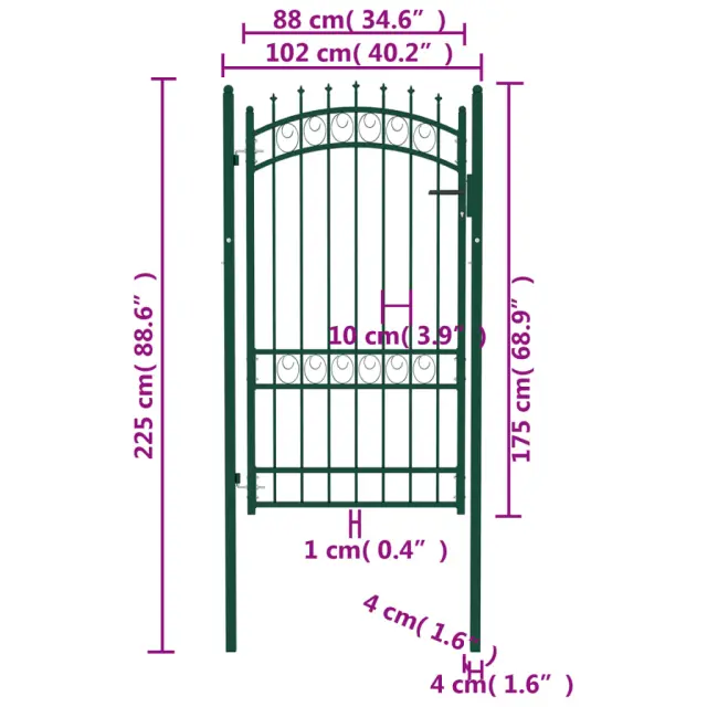 vidaXL Vrata za ograjo s konicami jeklo 100x175 cm zelena