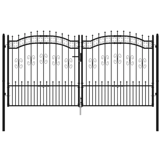 vidaXL Vrata za ograjo s suličastim vrhom črna 305x198 cm prašno jeklo