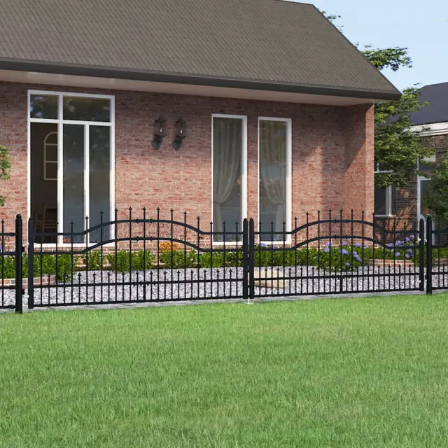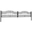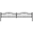 vidaXL Vrata za ograjo s suličastim vrhom črna 406x120 cm prašno jeklo