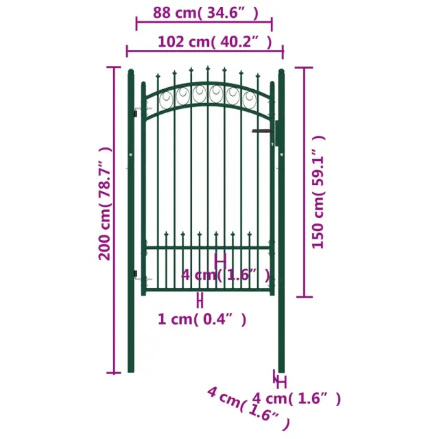 vidaXL Vrata za ograjo s konicami jeklo 100x150 cm zelena