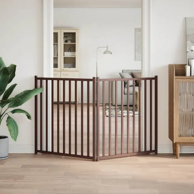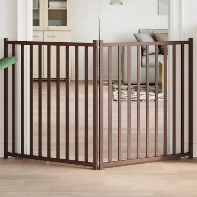 vidaXL Vrata za pse zložljiva 2 panela rjava 160 cm topolovina