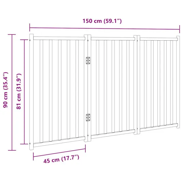 vidaXL Vrata za pse zložljiva 3 paneli bela 150 cm trden les jelke