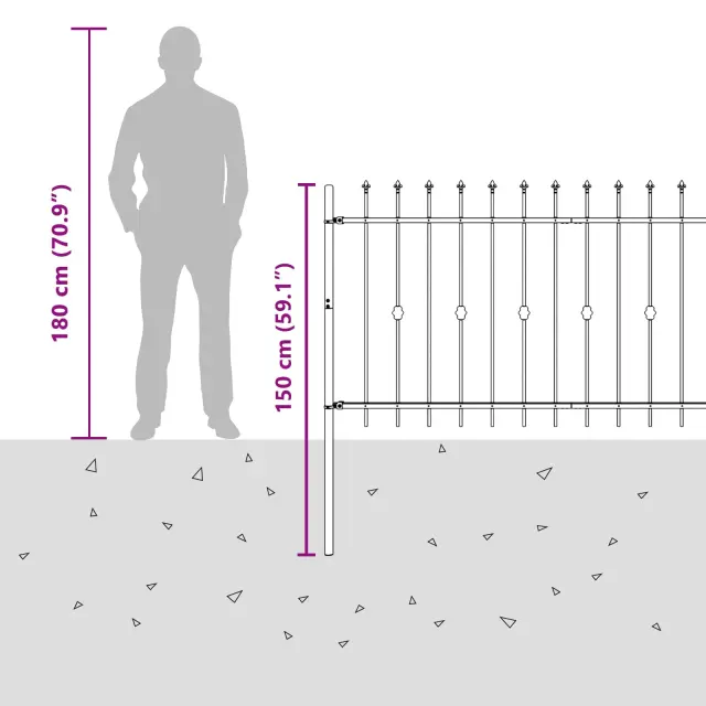 • Prašno lakirano jeklo: Ograja je narejena iz prašno lakiranega jekla, kar zagotavlja dolgo življenjsko dobo. Ta material je znan po vzdržljivosti in odpornosti na vreme ter poškodbe, zato je odlična izbira za zunanje prostore. S sodobnimi tehnikami premaza ta ograja ohranja eleganten videz skozi leta, nudi pa tudi varno zaščito za vaš vrt ali dvorišče.