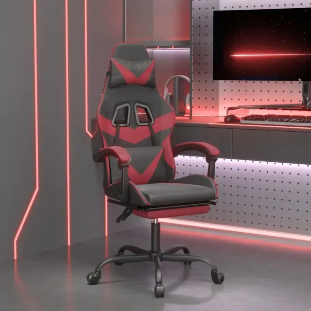 vidaXL Vrtljiv gaming stol z oporo za noge črno + vin. rdeče um. usnje