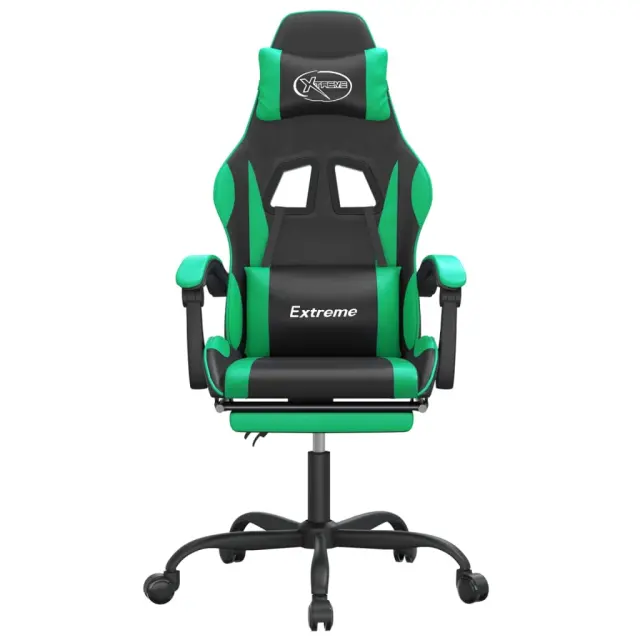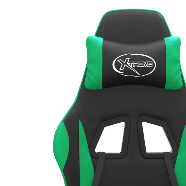 vidaXL Vrtljiv gaming stol z oporo za noge črno in zeleno um. usnje