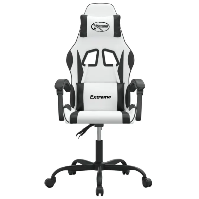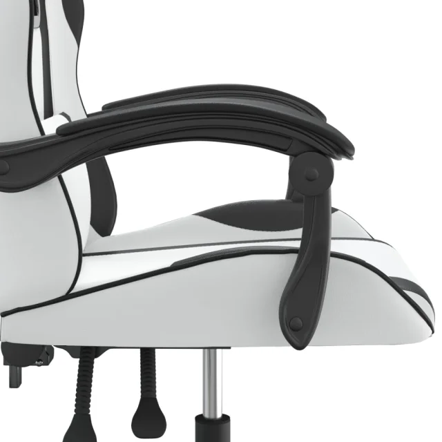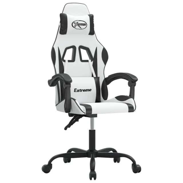 vidaXL Vrtljiv gaming stol belo in črno umetno usnje