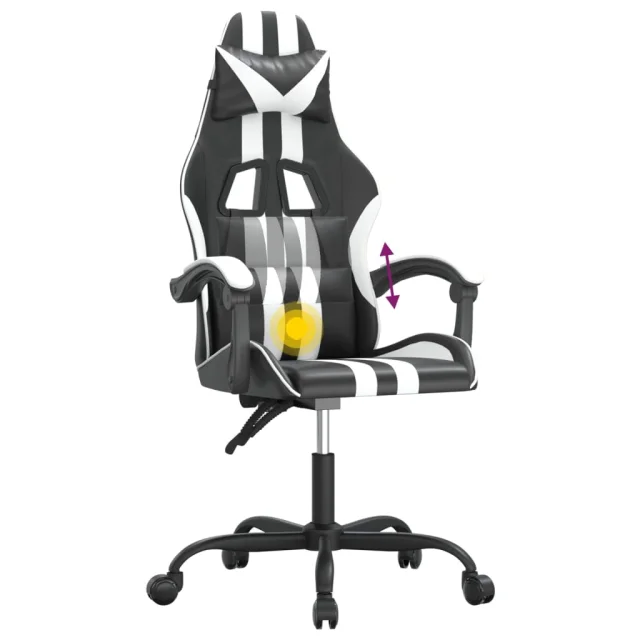 vidaXL Vrtljiv gaming stol črno in belo umetno usnje